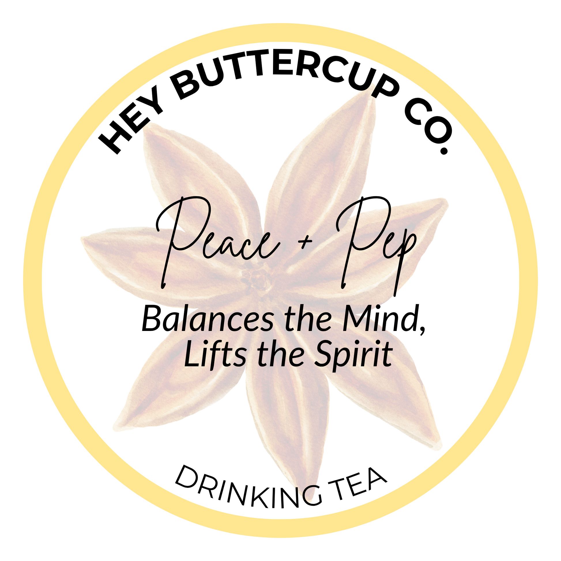 Peace + Pep is your bright little pick-me-up wrapped in calm — the “gentle clarity” blend. She lifts the fog without the jitters, smooths out the edges of stress, and gives you mental clarity with a soft exhale instead of a crash.